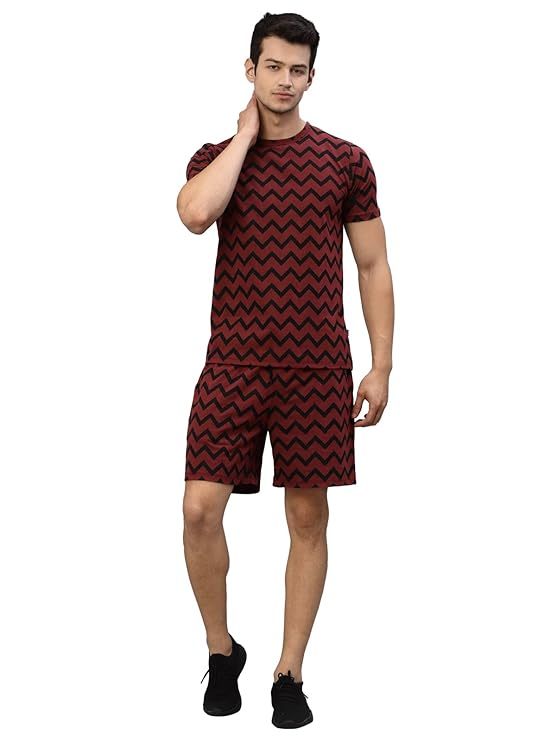 Waffle Knit Self Textured Wavy Design Co-ord Set for Men's (Size-XL)