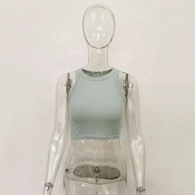 White Ribbed Cropped Tank Top