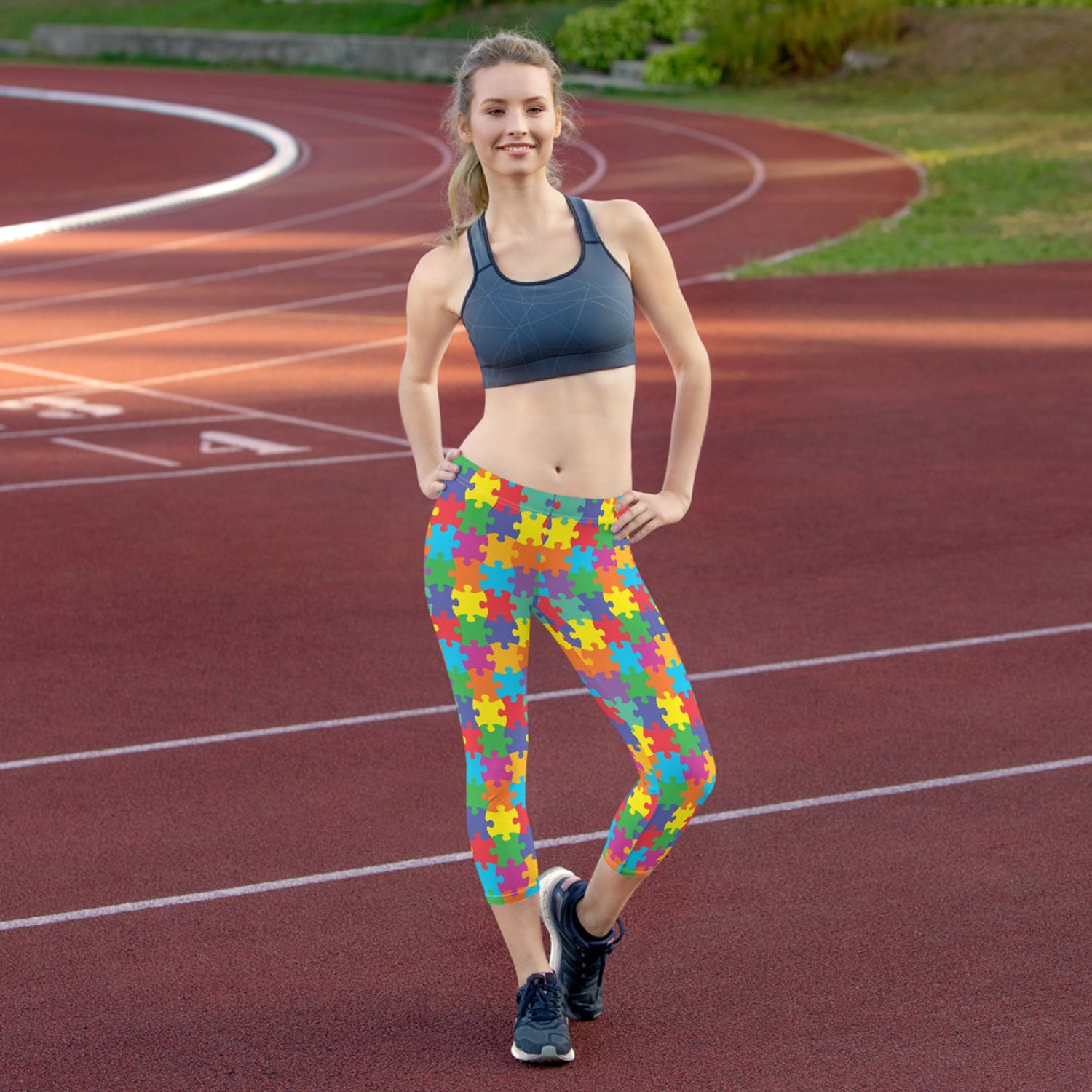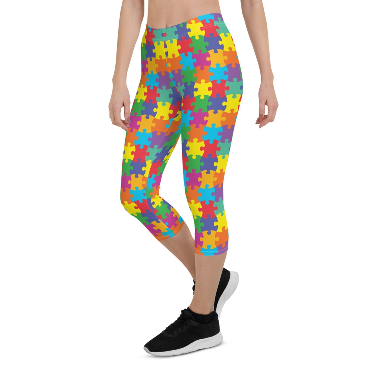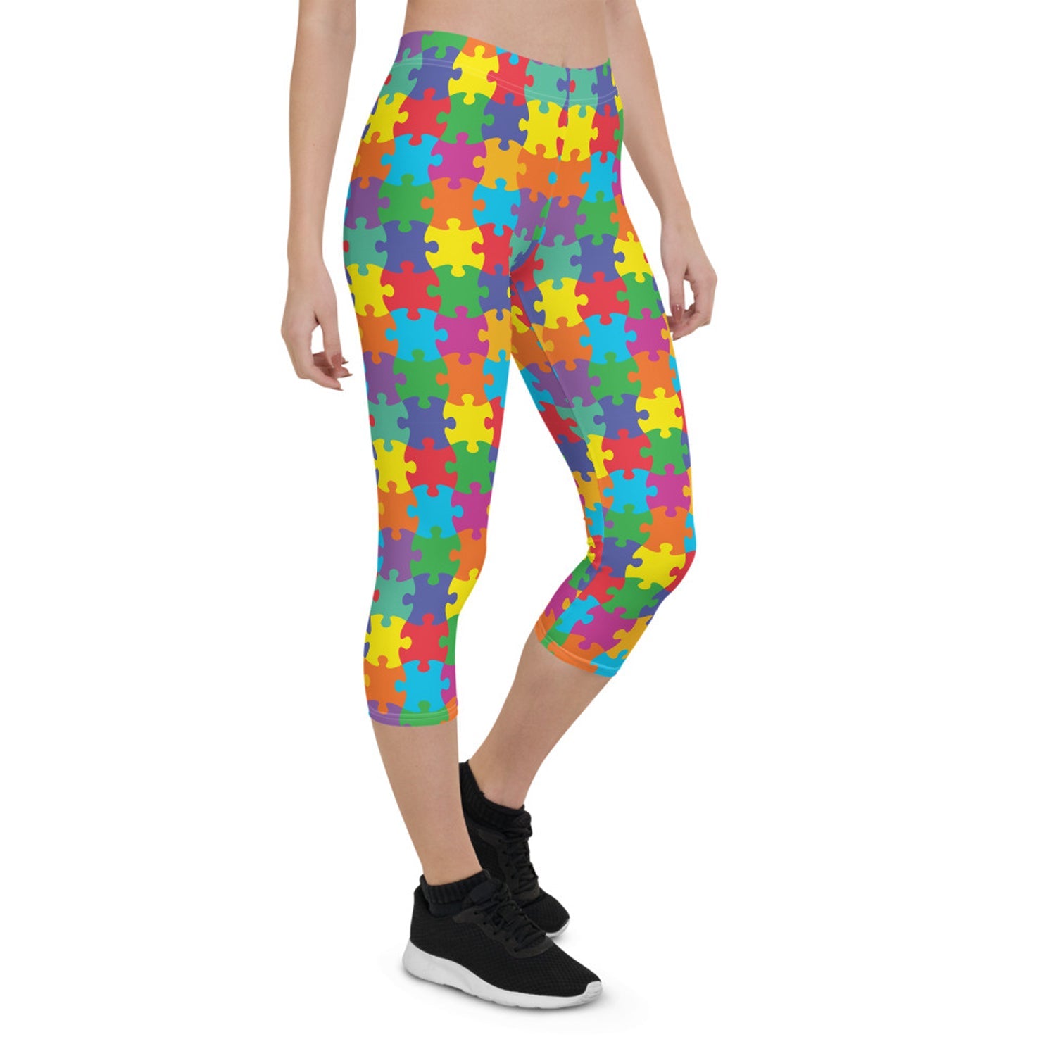 Womens Colorful Jigsaw Puzzle Capri Leggings