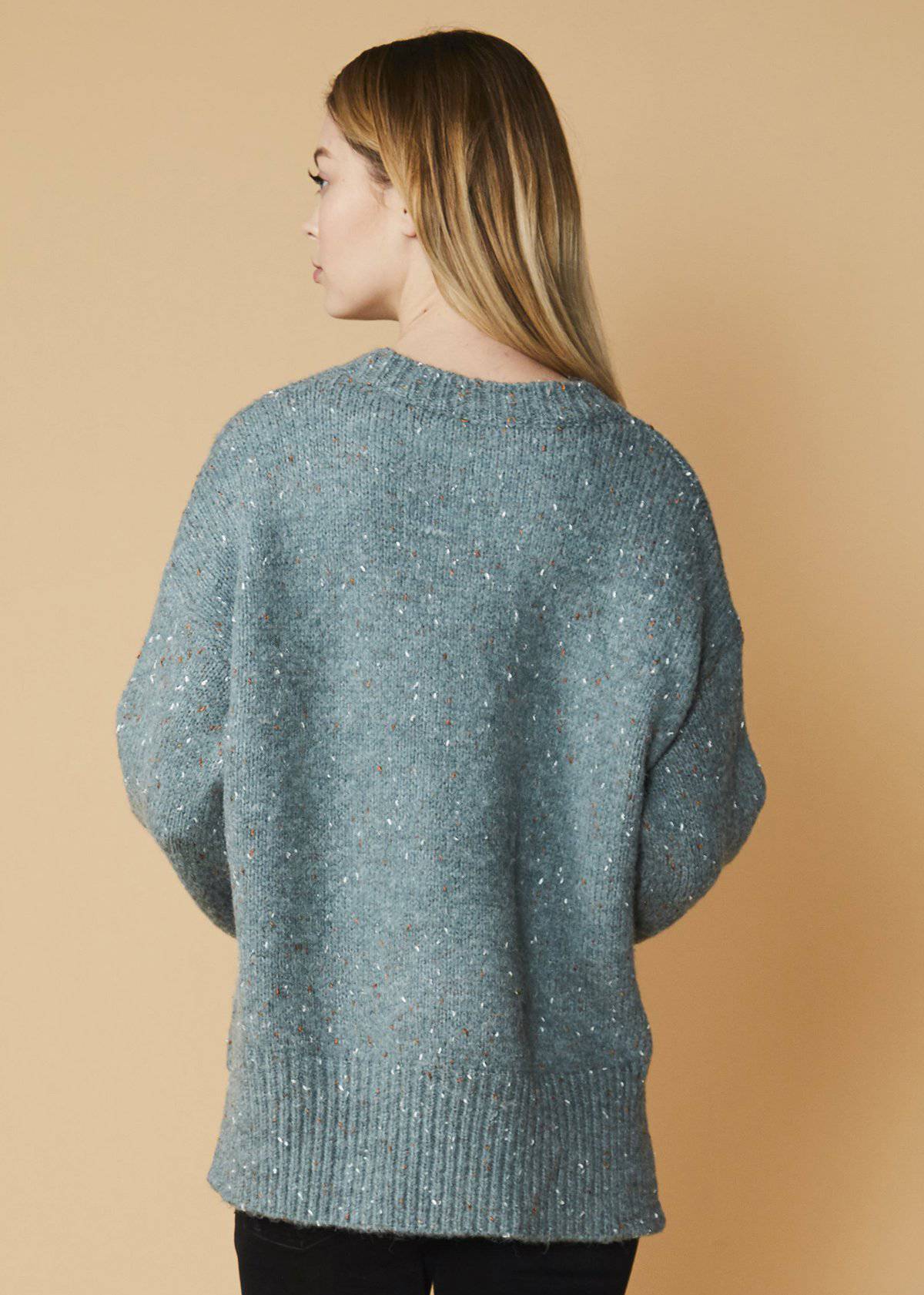Nurode Crewneck Oversized Pullover with Chest Pocket and Hi-Lo detail
