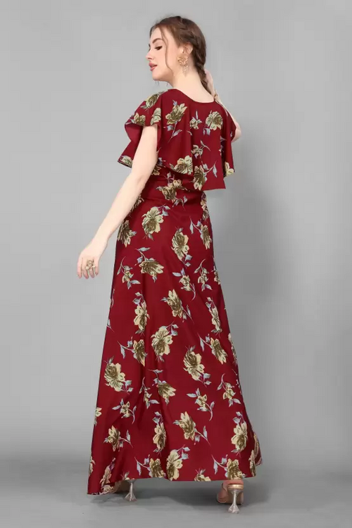 Women's Printed Crepe Stitched Anarkali Gown (Maroon) (Size XL)