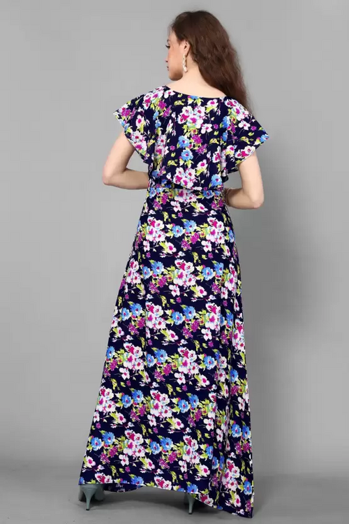 Women's Printed Crepe Stitched Anarkali Gown (Multicolor) (Size L)