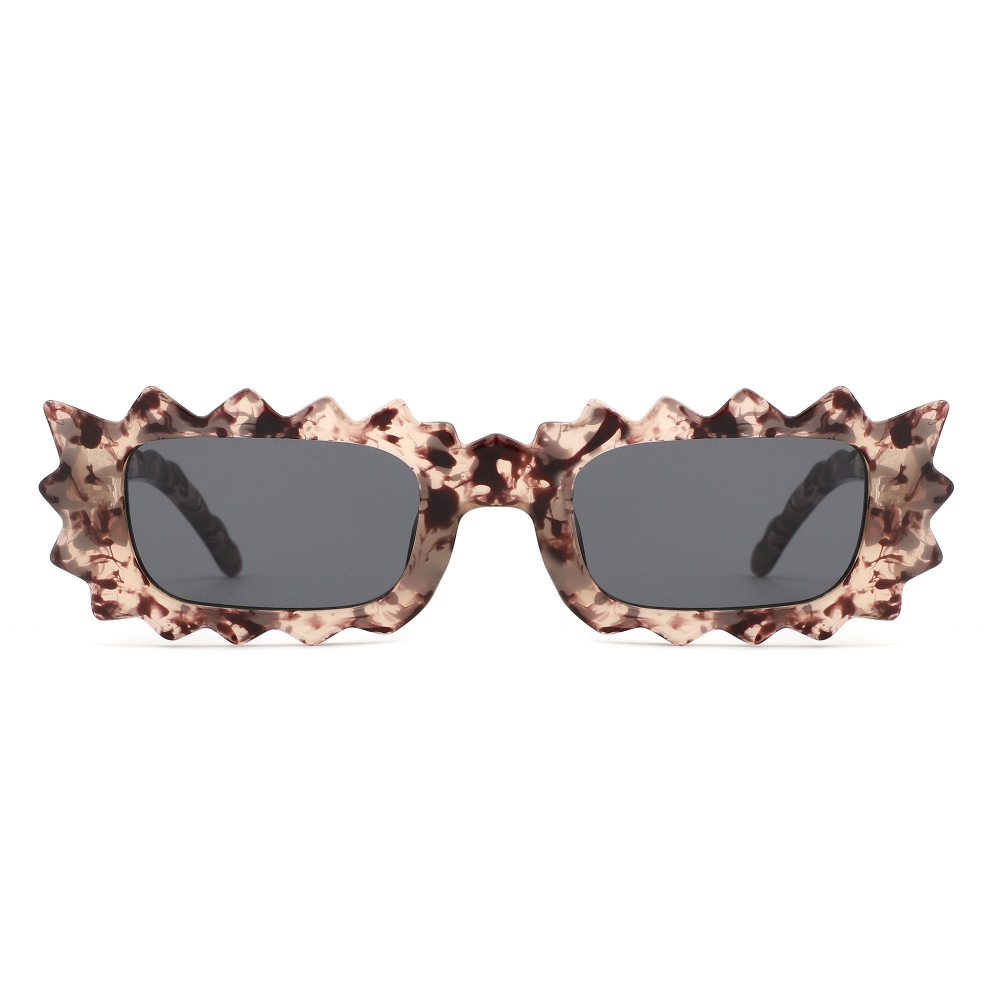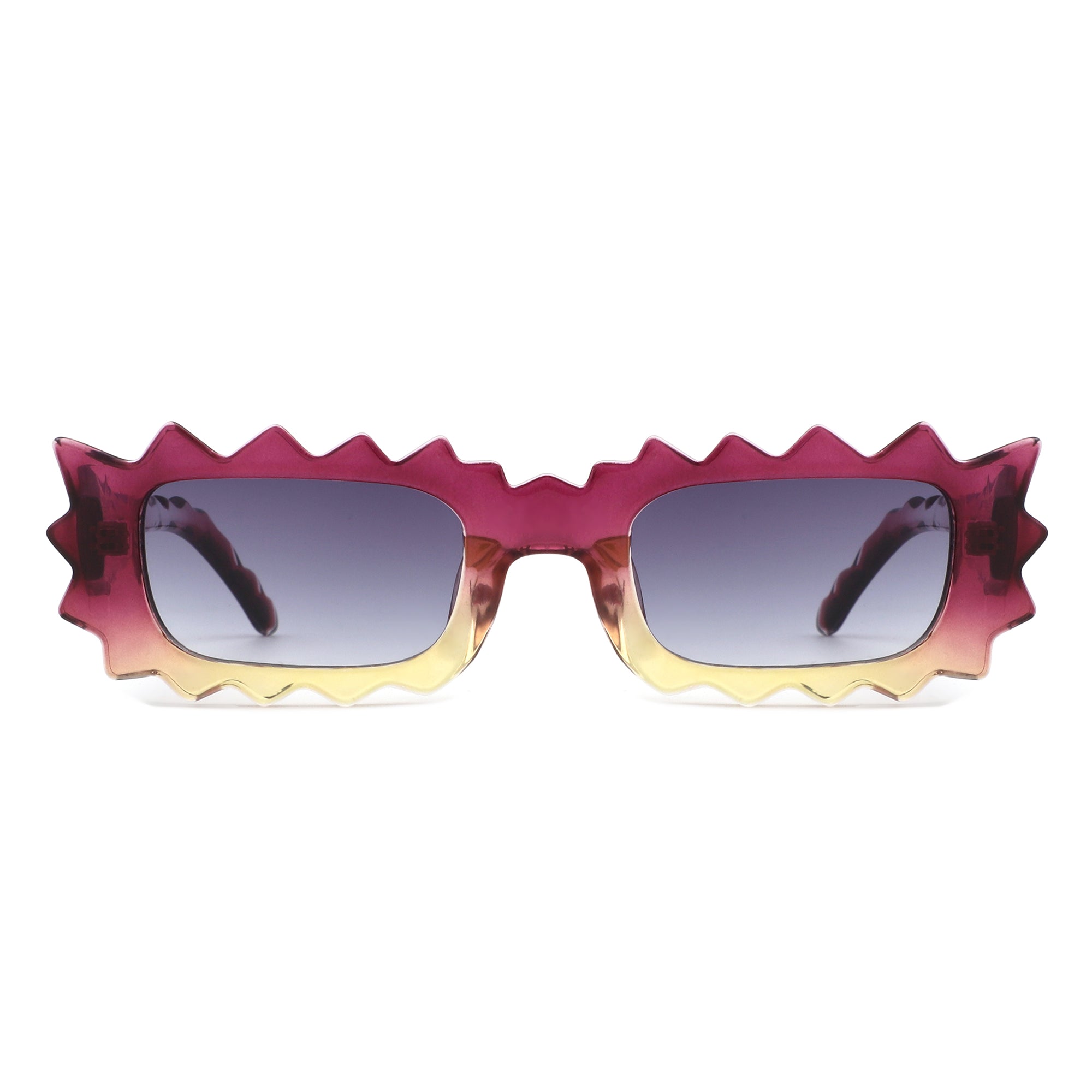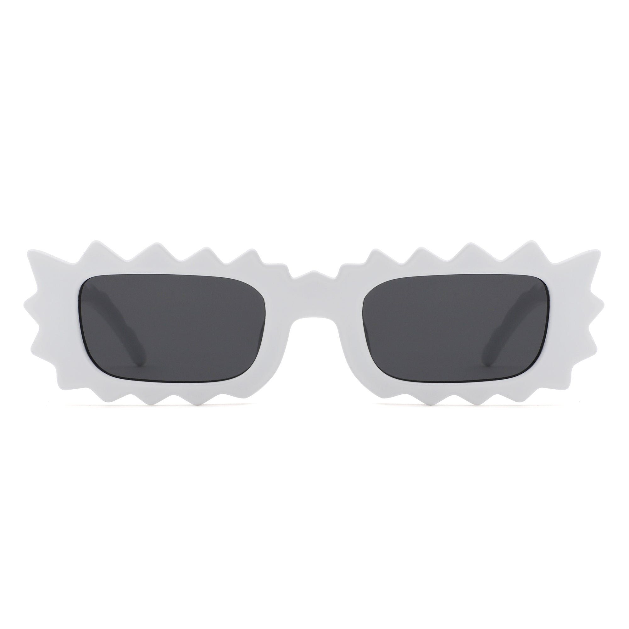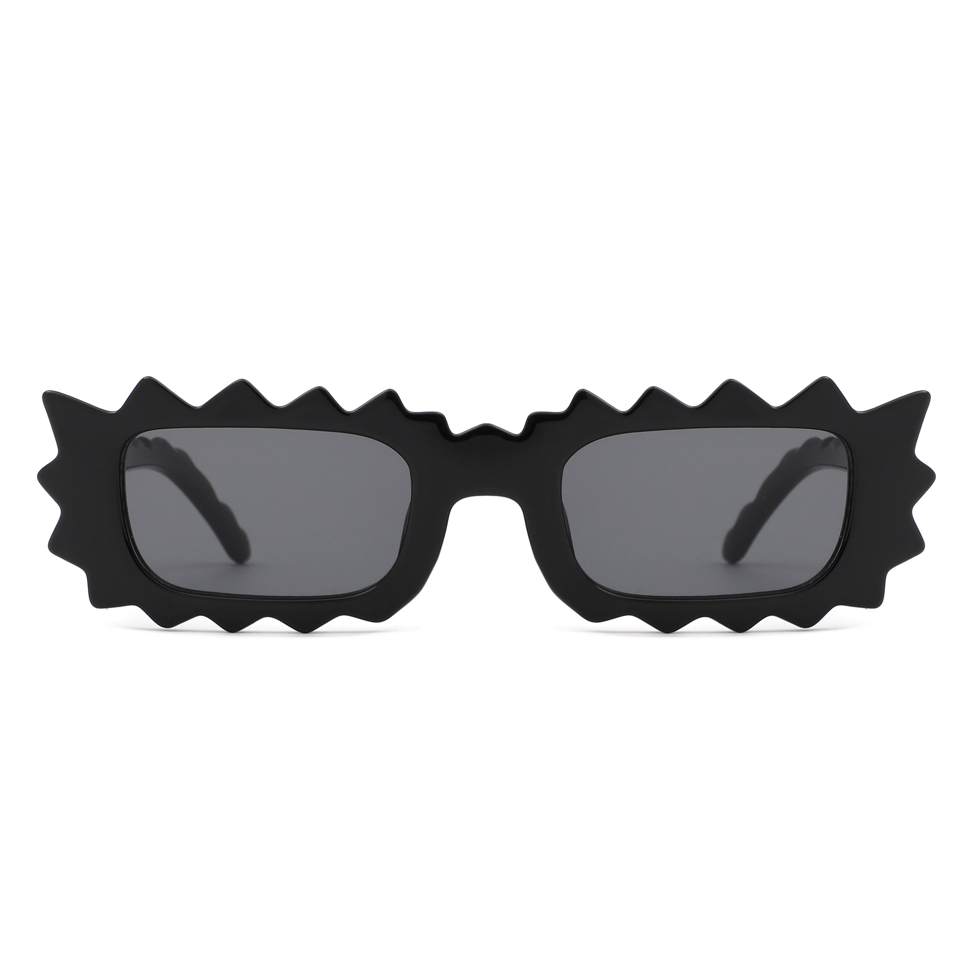 The Cramilo Rectangle Modern Spikes Irregular Wavy Square Sunglasses are a unique and eye-catching pair of shades that combine contemporary design with essential sun protection. Whether you're hitting the beach, strolling through the city, or simply adding a touch of flair to your everyday look, these sunglasses are sure to make you stylish. The rectangle shape provides ample coverage for your eyes, while the subtle spikes along the edges add a touch of edge and intrigue. the wavy square detailing on the temples offers an unexpected and fashion-forward twist. These sunglasses are crafted from high-quality, lightweight materials that ensure comfortable wear throughout the day without feeling heavy on your face. Cramilo's Rectangle Modern Spikes Sunglasses provide essential UVA and UVB protection, shielding your eyes from the sun's harmful rays. The sunglasses come in a complete stylish packaging box, with a microfiber cleaning cloth and pouch. The Cramilo Rectangle Modern Spikes Irregular Wavy Square Sunglasses are a great choice for anyone who wants a pair of sunglasses that is both stylish and functional.