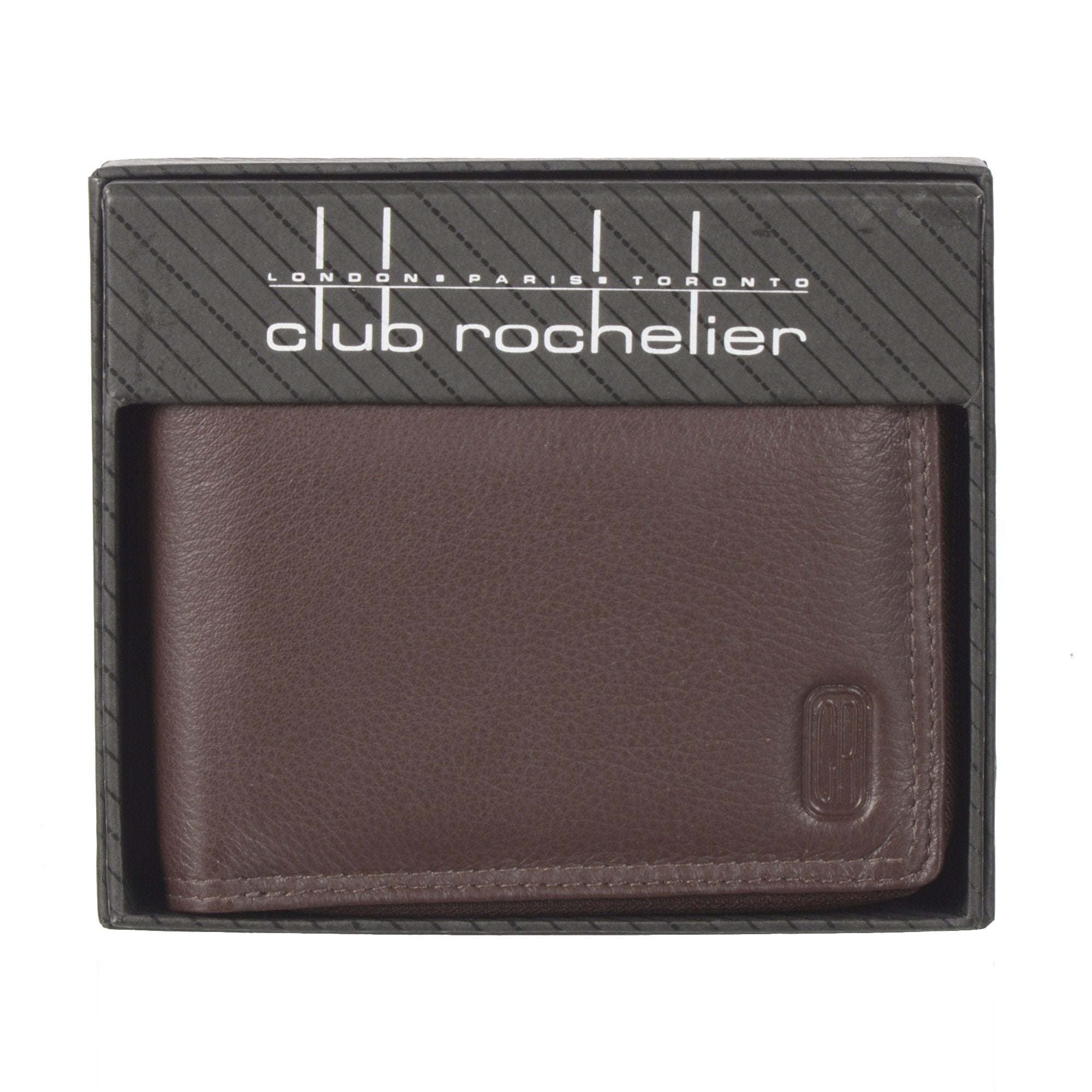 Uniquely styled with a secured 3 way zip closure this hand crafted leather Club Rochelier Zip Around Billfold wallet is a classic and functional design. Open up the secured zipper closure and you will find multi functional pockets that will hold credit cards, receipts, ID and so much more. This wallet also features a gusseted coin pocket. Everything you need for a complete and organized wallet.